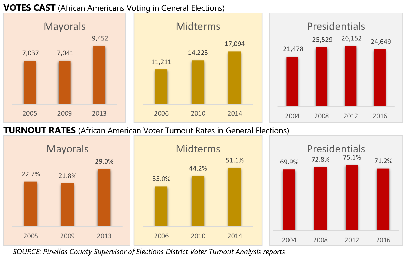 It appears that this year’s election will see yet another surge in African American voting, following the record set in 2013 during the showdown between current Mayor Rick Kriseman and former Mayor Bill Foster.