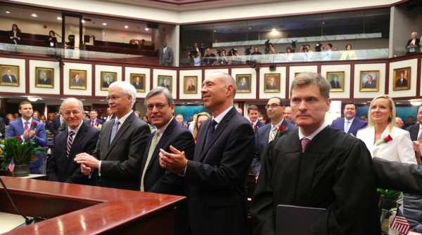 Justices of the Florida Supreme Court attend the opening session of the Florida Legislature in January. Left to Right: Chief Justice Charles T. Canady, Justice …