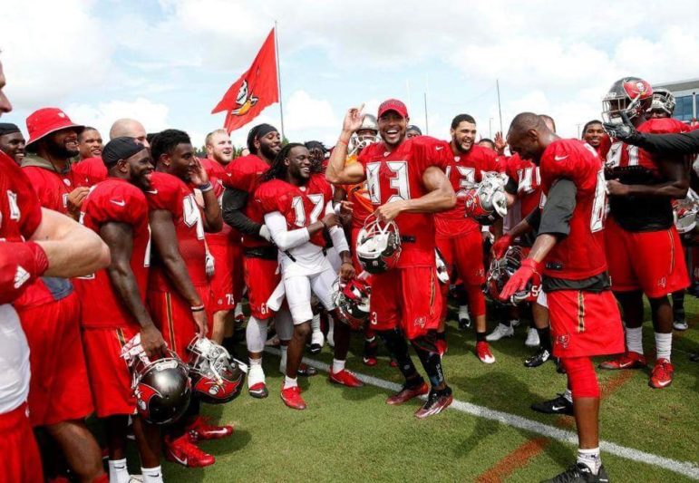 Above: Vincent Jackson (center) surrounded by former teammates with the Tampa Bay Buccaneers Former Tampa Bay Buccaneer Vincent Jackson was center stage at a …